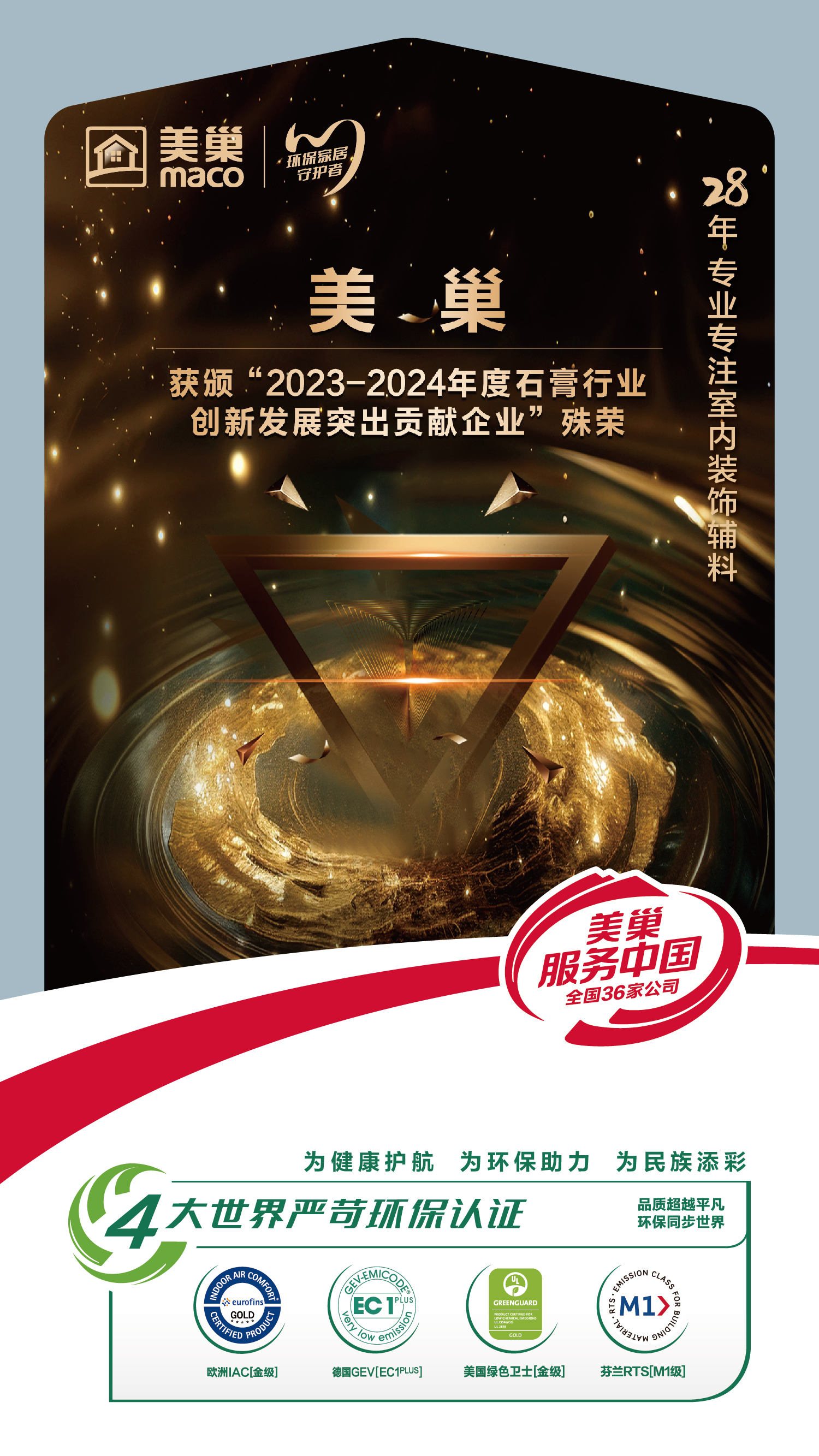 自成立以來,美巢始終將“環(huán)保”視為企業(yè)發(fā)展的重中之重,秉承“環(huán)保家居守護者”的品牌定位和“為健康護航、為環(huán)保助力、為民族添彩”的品牌使命,不遺余力的為全國消費者提供更環(huán)保、更高品質的產品。
