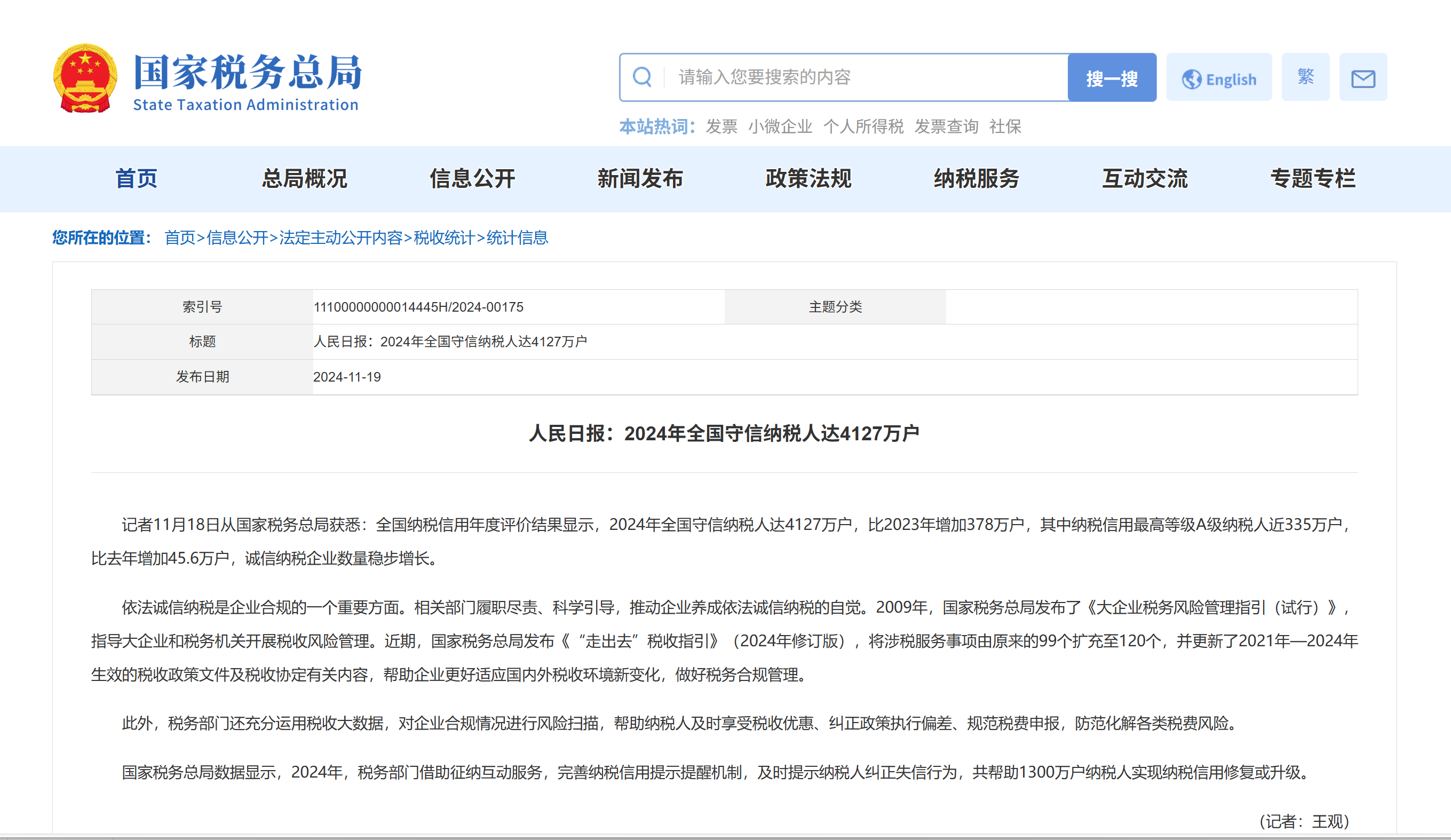 截圖為國(guó)家稅務(wù)總局官網(wǎng)統(tǒng)計(jì)信息