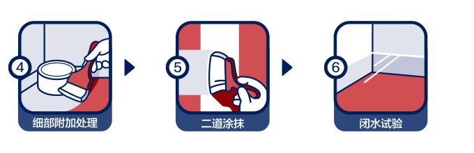 | 施工方法: | 施工質(zhì)量配比為A液料︰B粉料=1.60︰2.90,將液料倒入桶中,再緩慢加入粉料,攪拌成均勻無結(jié)塊的漿料,靜置2~3分鐘,再攪拌1~2分鐘。用工具涂刷2~3遍,涂層厚度應(yīng)均勻,不得有漏刷或堆積現(xiàn)象,前后兩遍的涂刷方向應(yīng)相互垂直,應(yīng)在前一遍實(shí)干后再涂刷下一遍。單層涂刷厚度不超過1mm,涂膜過厚,會(huì)導(dǎo)致干燥時(shí)間長,涂膜防水可靠性下降。細(xì)部節(jié)點(diǎn)應(yīng)采用網(wǎng)格布加強(qiáng)涂刷。攪拌的防水漿料須在1小時(shí)內(nèi)用完。待涂膜完全干燥48h后方可進(jìn)行閉水試驗(yàn)。 |