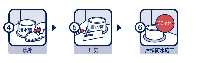 基層處理: 基層應(yīng)堅實、無灰渣、無浮灰、無明水,地漏和管道根部無銹跡和灰渣。