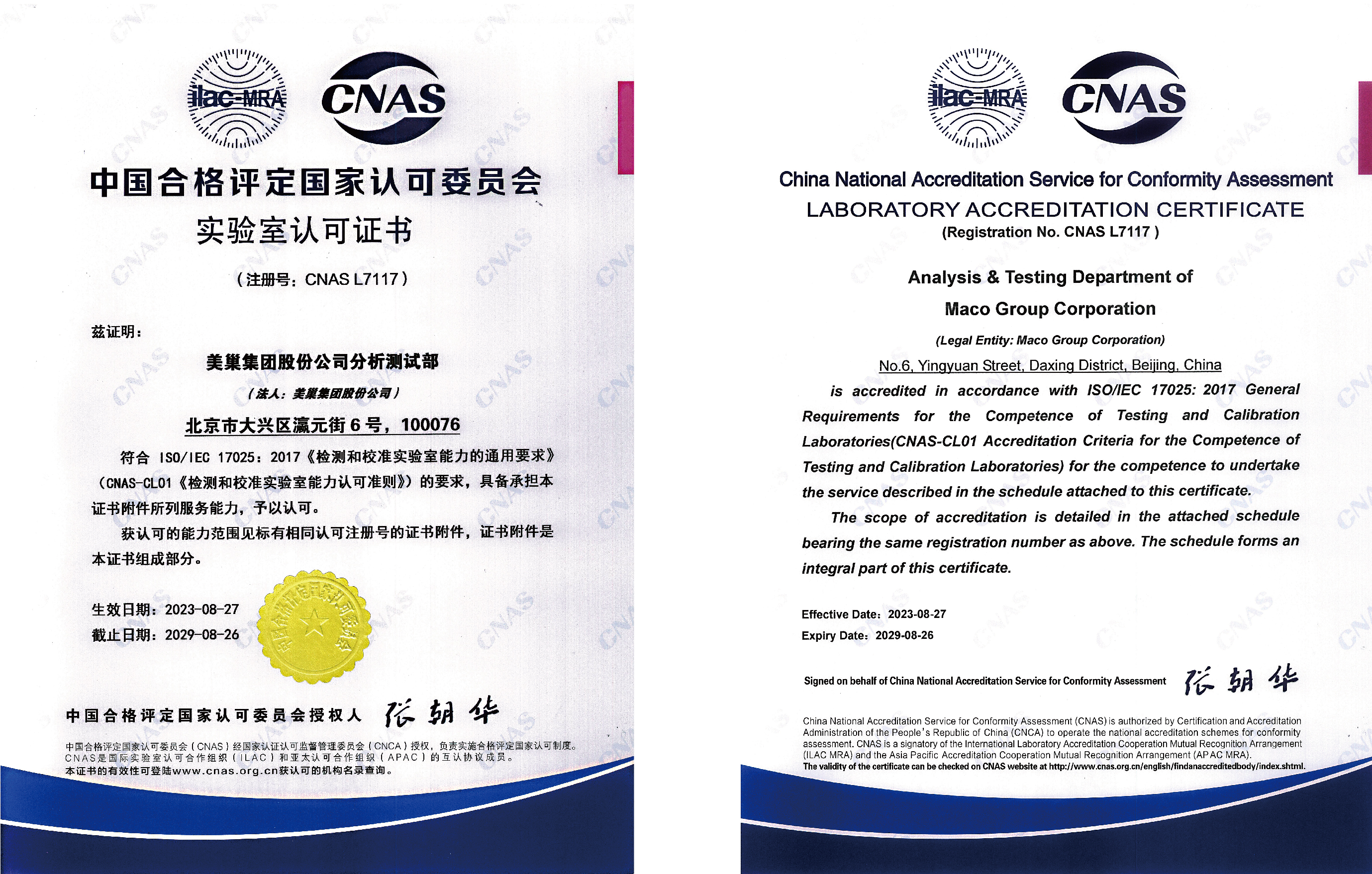 經(jīng)中國合格評定國家認可委員會(CNAS)評審,2014年8月底,美巢集團股份公司分析測試部(以下簡稱實驗室)正式通過CNAS認可(證書編號:CNAS L7117)。